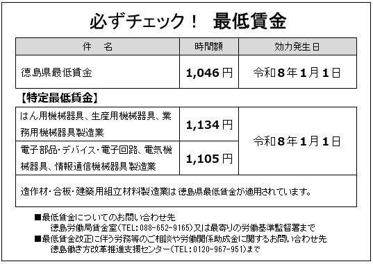 徳島県最低賃金改正のお知らせ